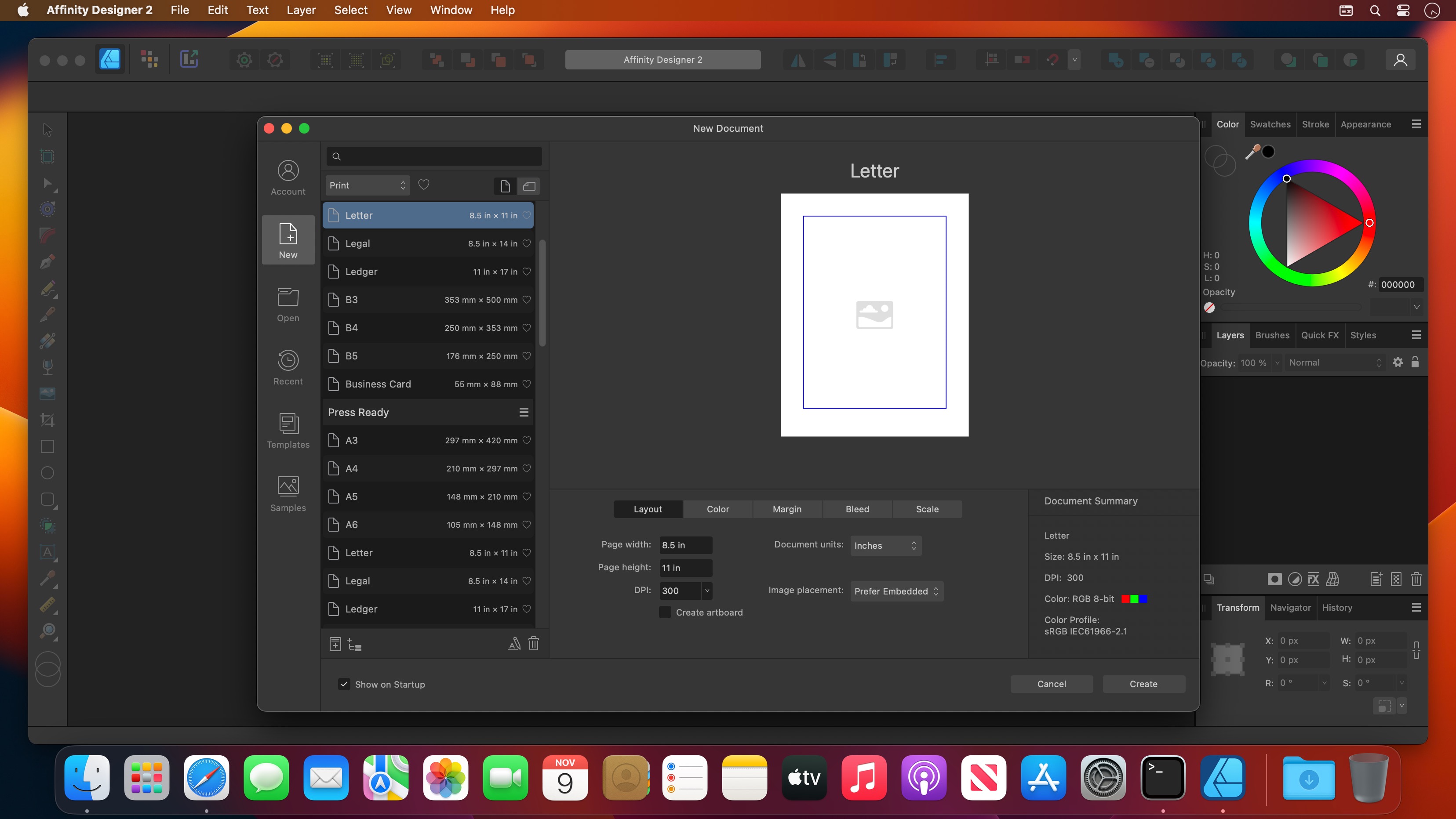 Affinity Designer comes with a versatile and fully customizable workspace that enables you to work with a docked or floating UI that seamlessly integrates with macOS’ workflow features such as iCloud, Full Screen and Spaces.