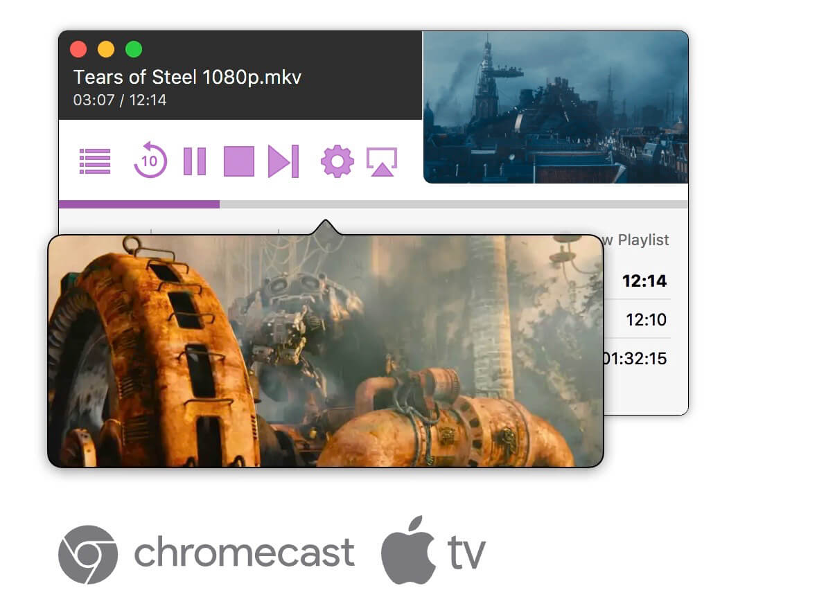 - Video pipeline that transparently and in real-time processes video files so that they can be natively played on Chromecast and Apple TV. Transcoding is only used when absolutely necessary and takes advantage of hardware acceleration when possible.