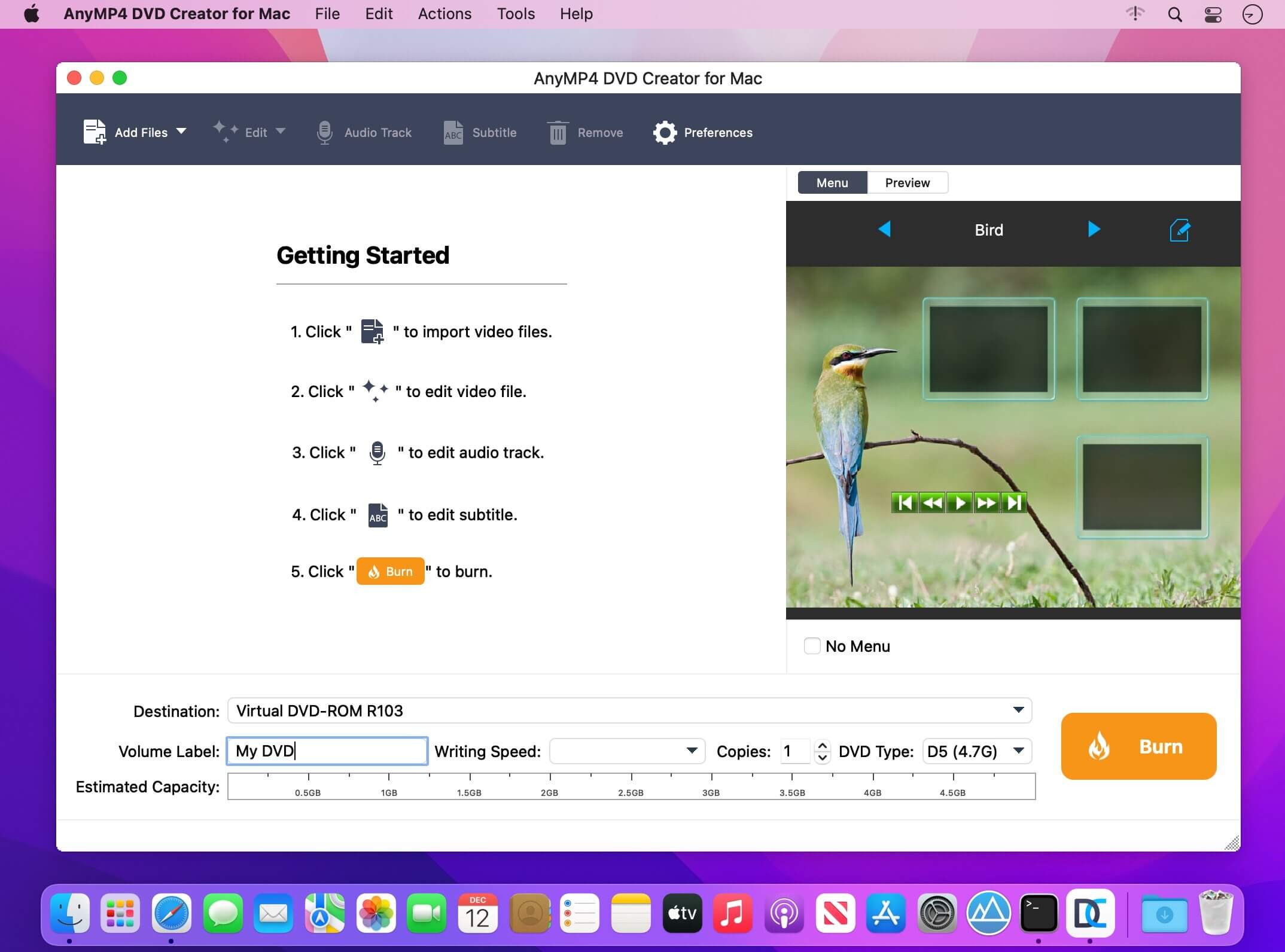 AnyMP4 DVD Creator for Mac is user-friendly and professional burning software.