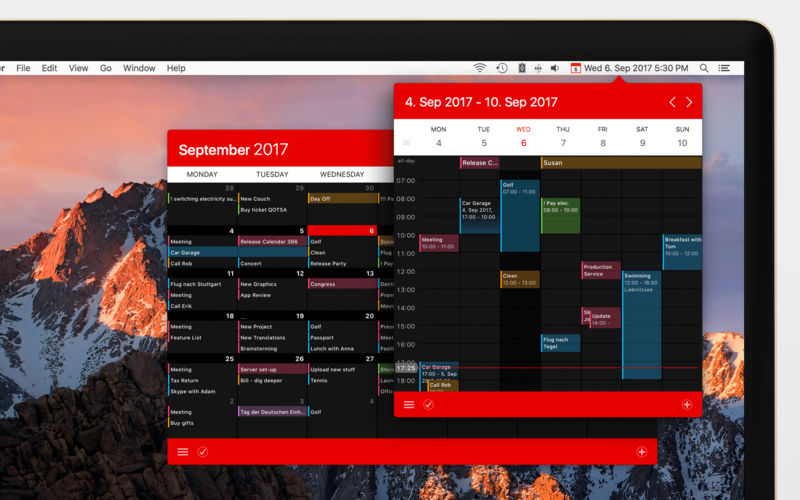 The most complete menu bar calendar for events & reminders! Appointments and ToDo’s, meetings and deadlines, birthdays and dates – make the most of your time with Calendar 366 II! Anything a calendar can do, Calendar 366 II can do better – and all functions can be adjusted easily and intuitively.