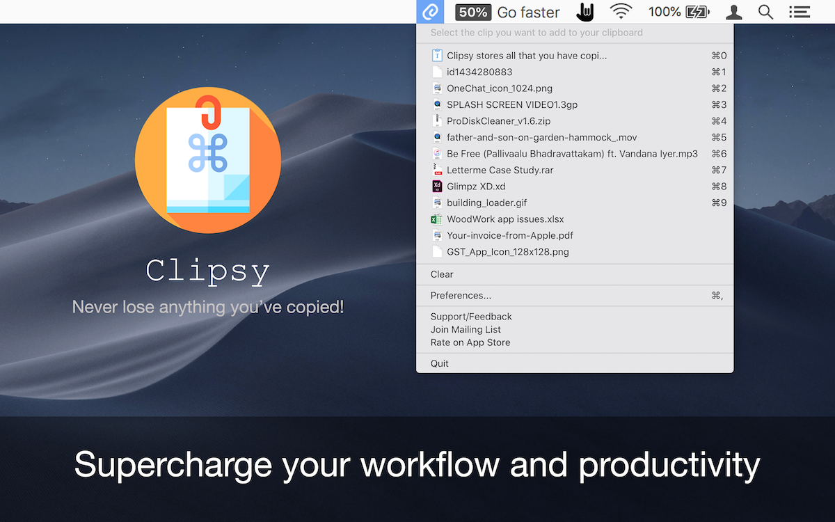 Clipsy records your clipboard history of the copied text, images, links, and screenshots, etc., and lets you recall/paste them anytime, right at your fingertips. Running discreetly from your menu bar, allowing you to quickly find that snippet of text you’ve been looking for.