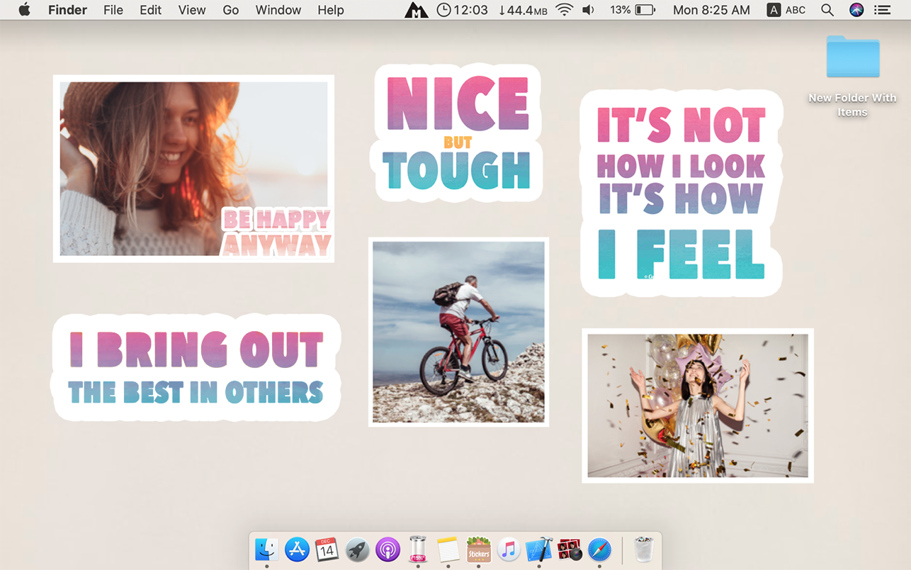 Your thoughts are the source of your emotions and mood. The conversations you have with yourself can be destructive or beneficial. Most people need to learn how to cultivate positive thoughts and dispel the negative ones. Desktop Stickers helps you to repeat positive self-talk everyday.
