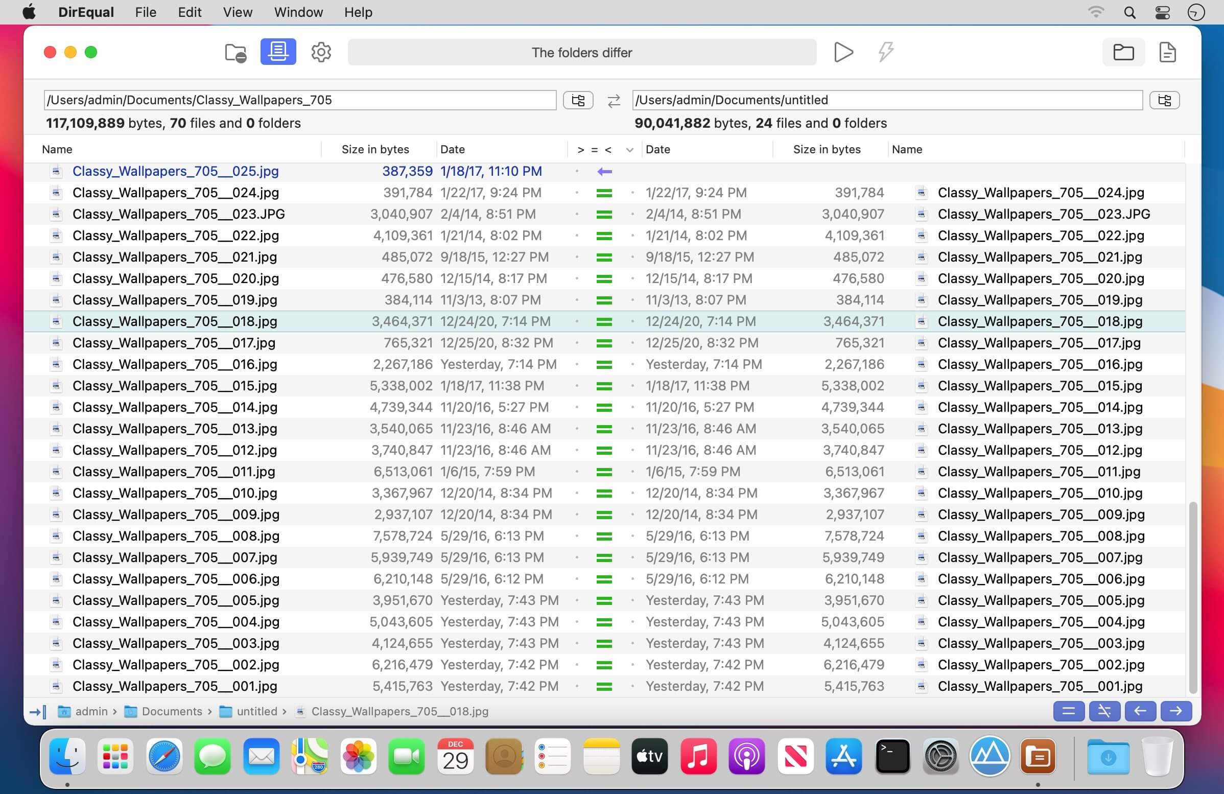 DirEqual is a Folder Compare Tool that makes it extremely easy to compare local files and folders on your Mac.