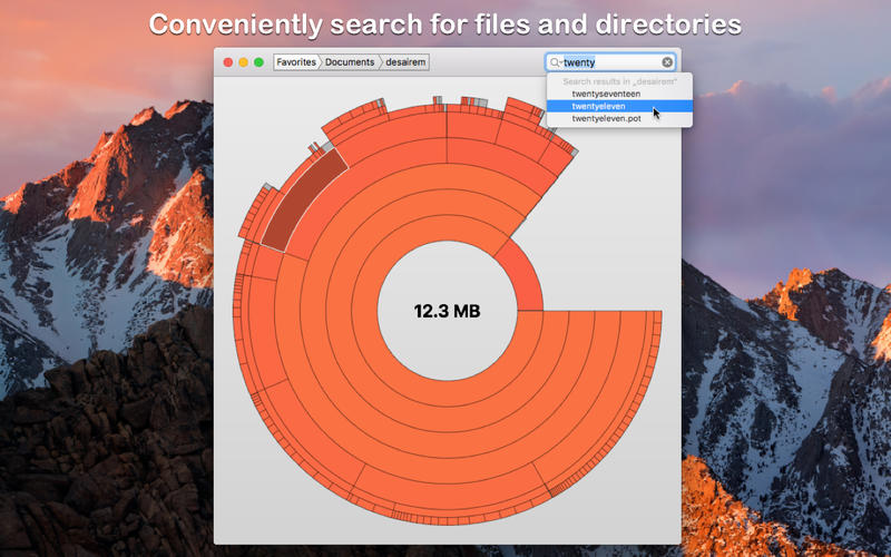 - choose between two modes: File Size Mode (where section sizes are relative to the respective file size) and File Count Mode (where section sizes represent the number of contained files).