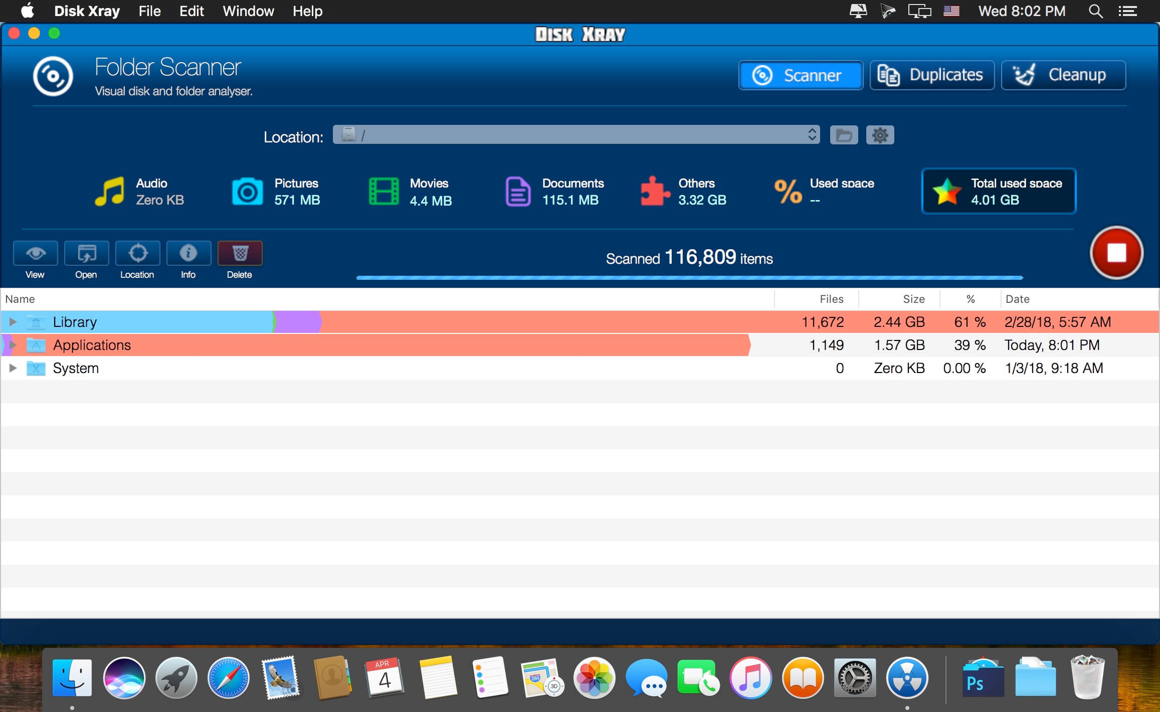Disk Xray is a disk-usage statistics viewer, duplicate files and folders finder and cleanup tool for OS X. It performs three fundamental functions, and it performs them extremely well. It also provides you maximum security, restoring all files if you removed something accidentally.