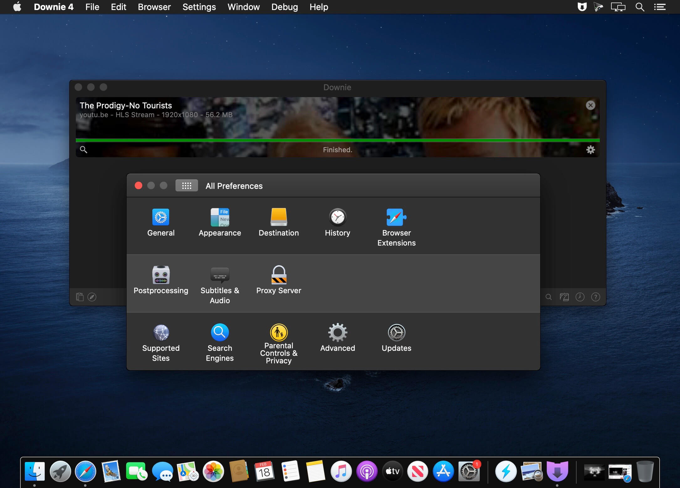 By default, Downie downloads MP4 files and places them in your default Downloads folder, but you can easily change this via the Preferences window. The same area allows you to setup notifications, or post processing actions (convert to MP4 if necessary, or extract audio only).