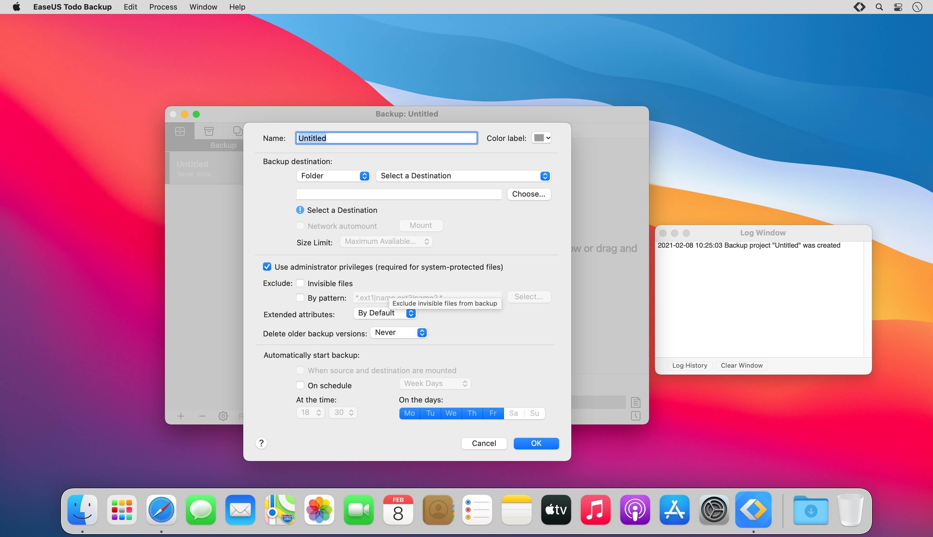 Scheduled backups are initiated in stealth mode and quit automatically after the process is complete. Never get interrupted by a backup.