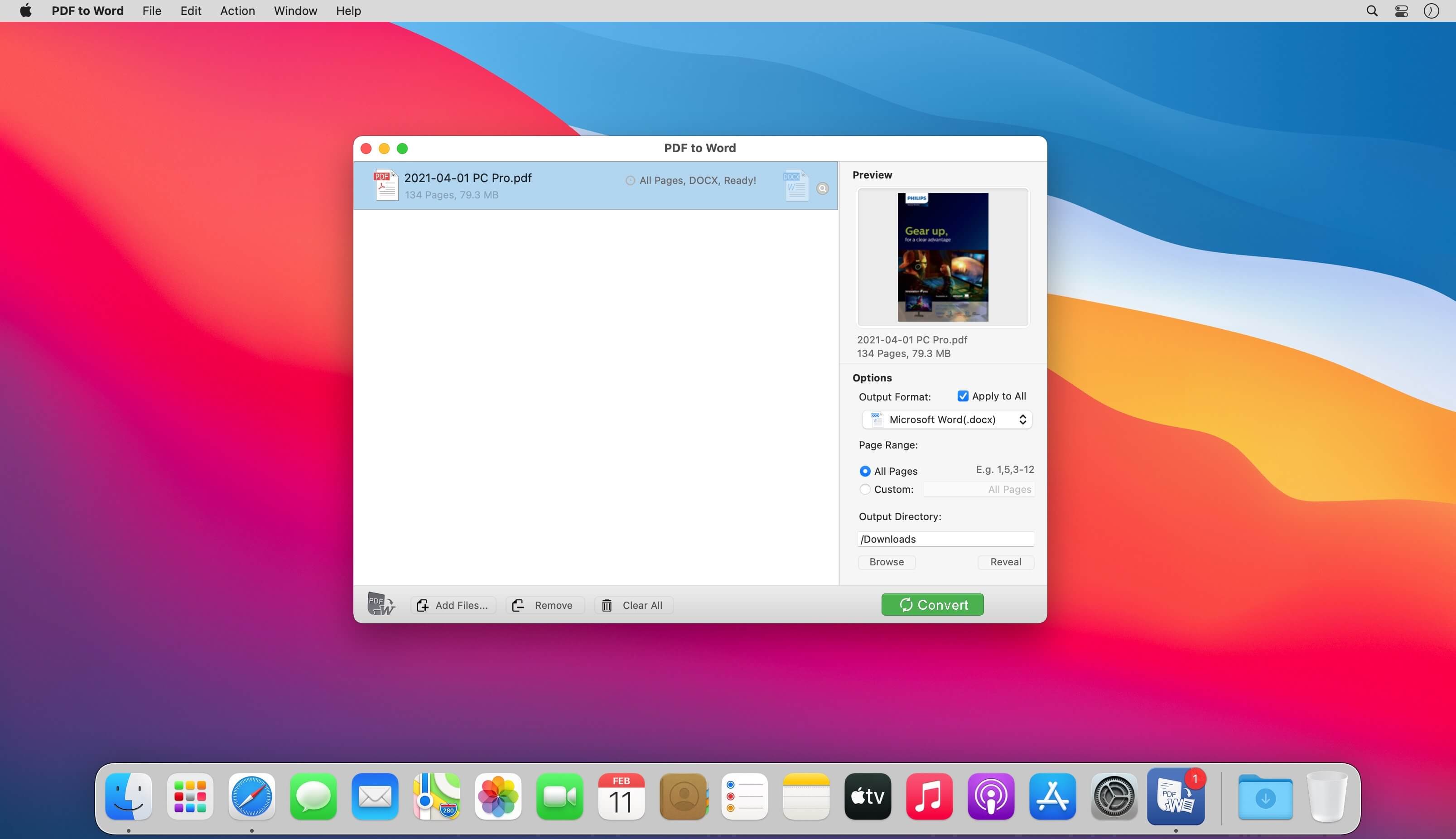 + Convert PDF files to fully-formatted and editable Word (.docx) documents directly.