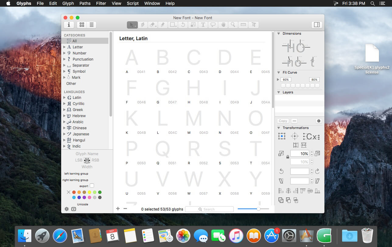 Glyphs is a simple to use Mac OS X app designed to allow anyone to create new fonts and modify letterforms with ease. Glyphs’ main focus lays on streamlining the workflow. Glyphs also comes with support for scripting. Scripts can help with a lot of repetitive tasks and will allow you to access all internal data and methods.