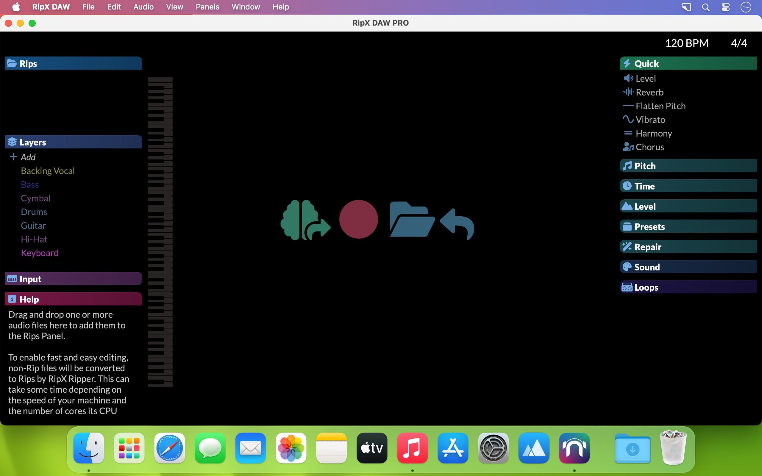 RipX DAW PRO adds the award-winning Audioshop tools and Harmonic Editor for the most precise audio editing available to create an AI DAW with unlimited capabilities. Two further panels are also included: Repair for quickly cleaning up audio non-destructively; and RipScripts for writing custom tools.