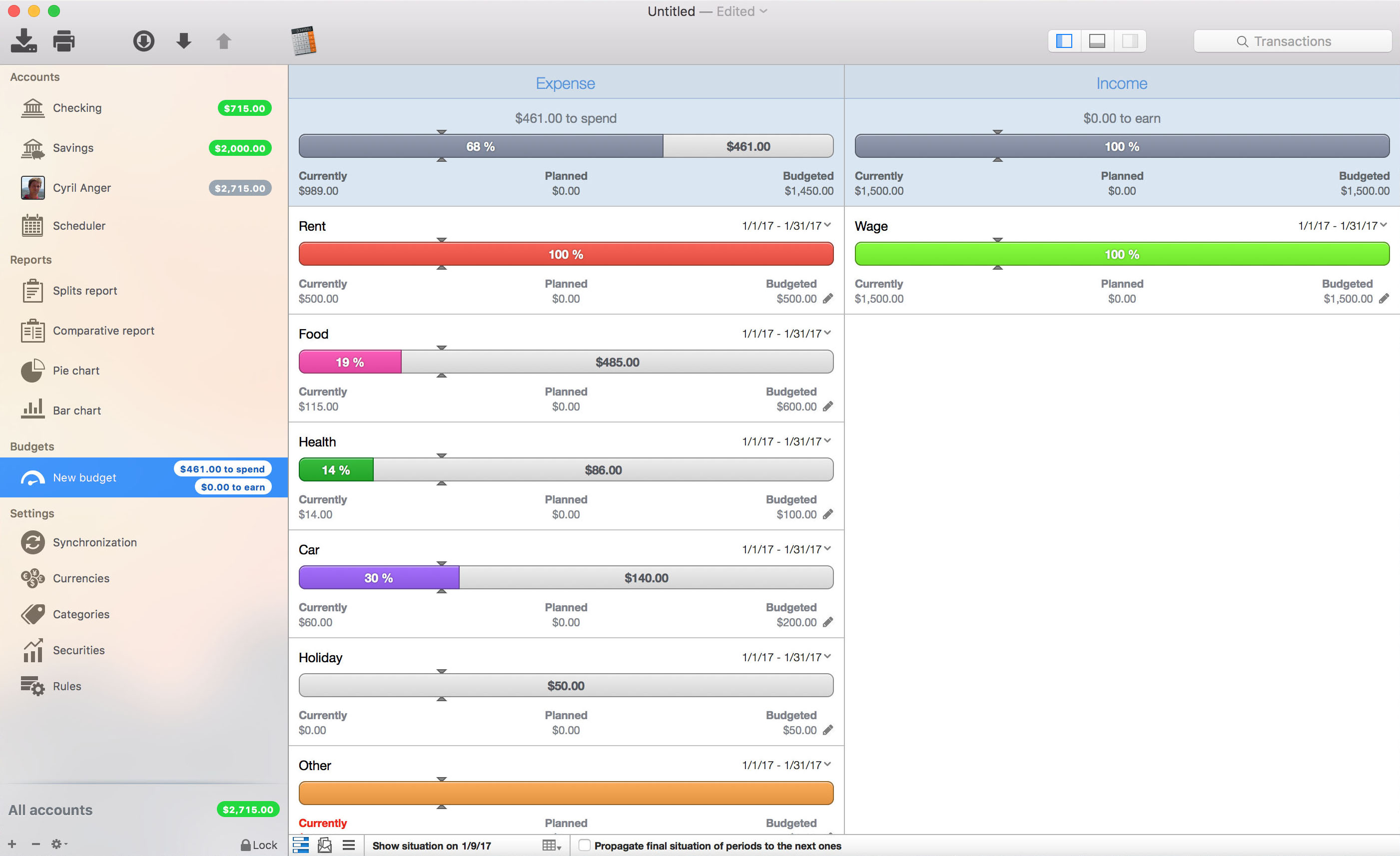 – Keep track of your income and expense thanks to budgets