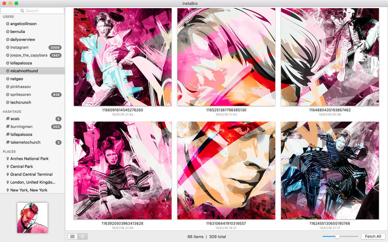 Simple Instagram browser that allows you to explore and download media by user, hashtag or location in a most convenient way. You can also export all data to a CSV file.