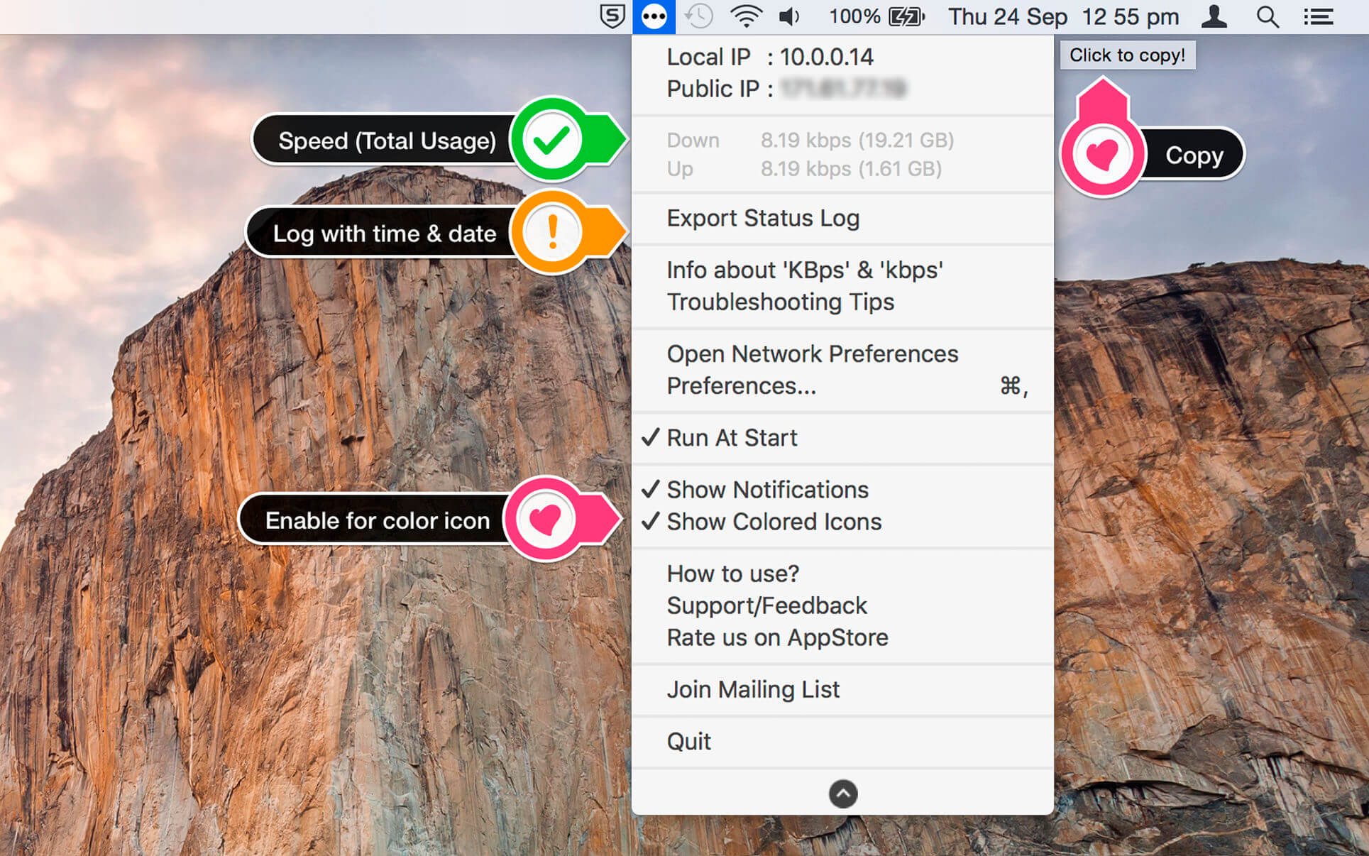 - Copy public IP with a click from the menu