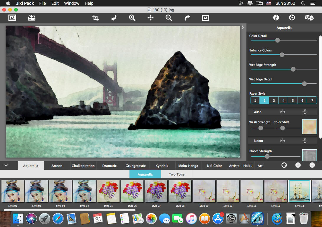 For maximum savings and convenience, the Premium Pack bundles 18 incredible creative apps into one powerful package: Aquarella, Artista Haiku, Artista Oil, Artista Sketch, Artoon, Chalkspiration, Dramatic Black&White, Grungetastic, Kyoobik Photo, Moku Hanga, NIR Color, Pop Dot Comics, Portrait Painter, Rainy Daze, Romantic Photo, Simply HDR, Snow Daze and Vintage Scene. The Premium Pack comes wrapped together for convenience — one application, one installer, one interface.
