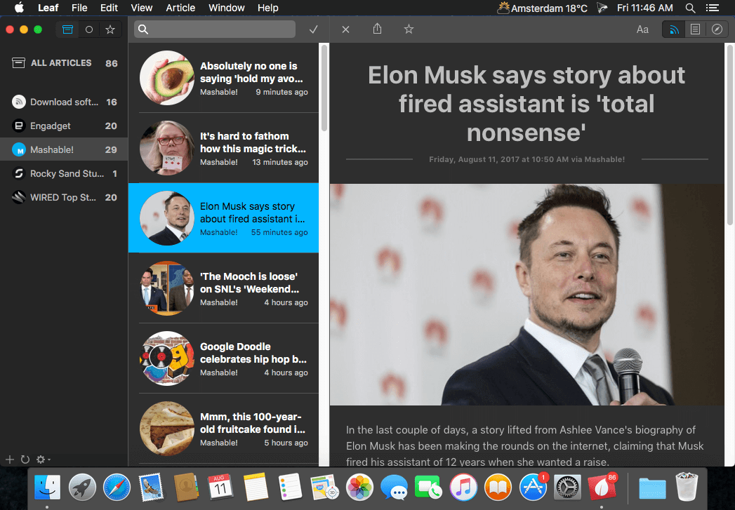Leaf is an amazing news reader for your Mac. Read, share, star and search your news by using a clean, intuitive interface.