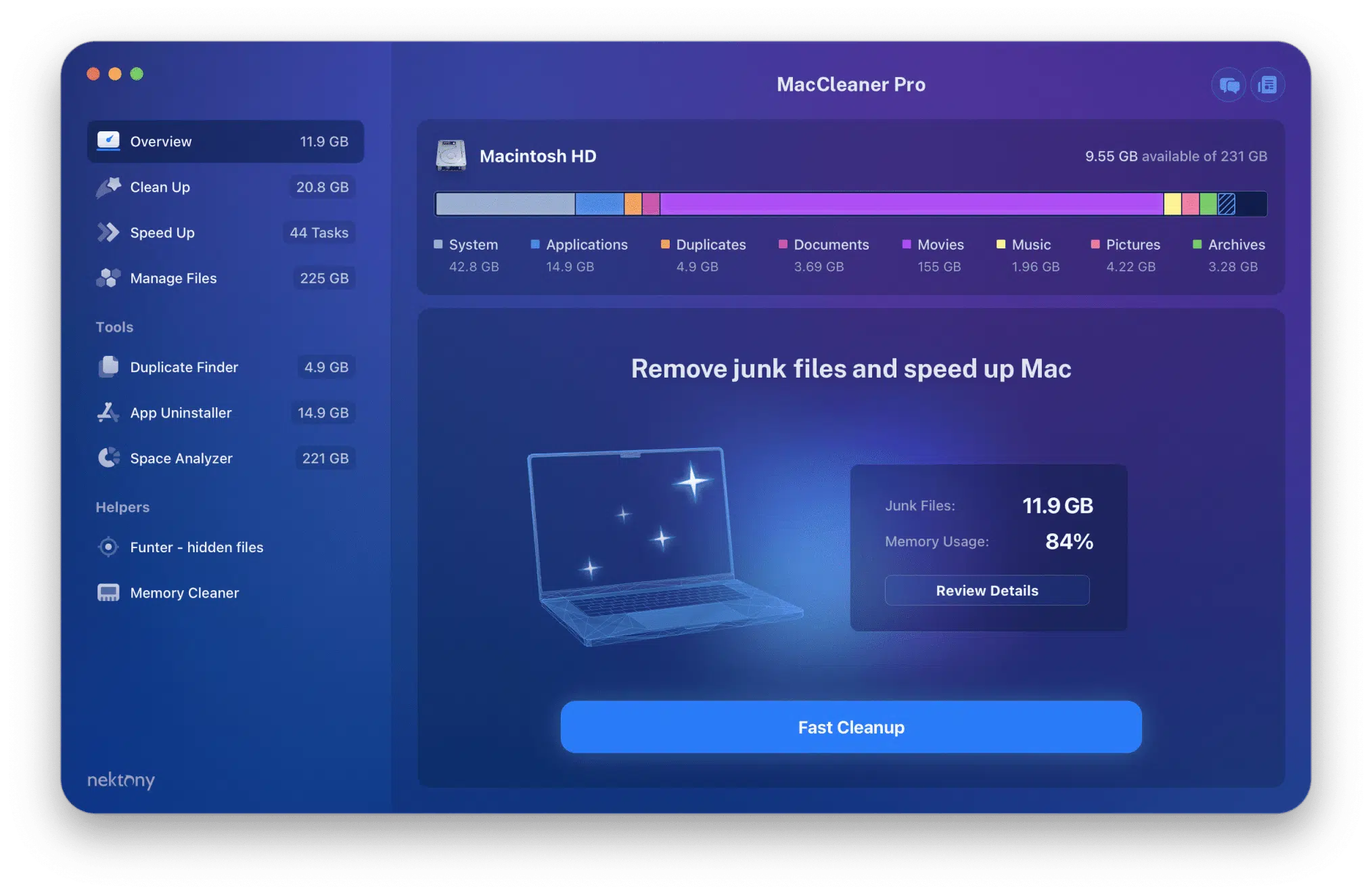 MacCleaner Pro is a Mac optimizer, which will help you to quickly and easily free up space on your Mac and optimize its performance.