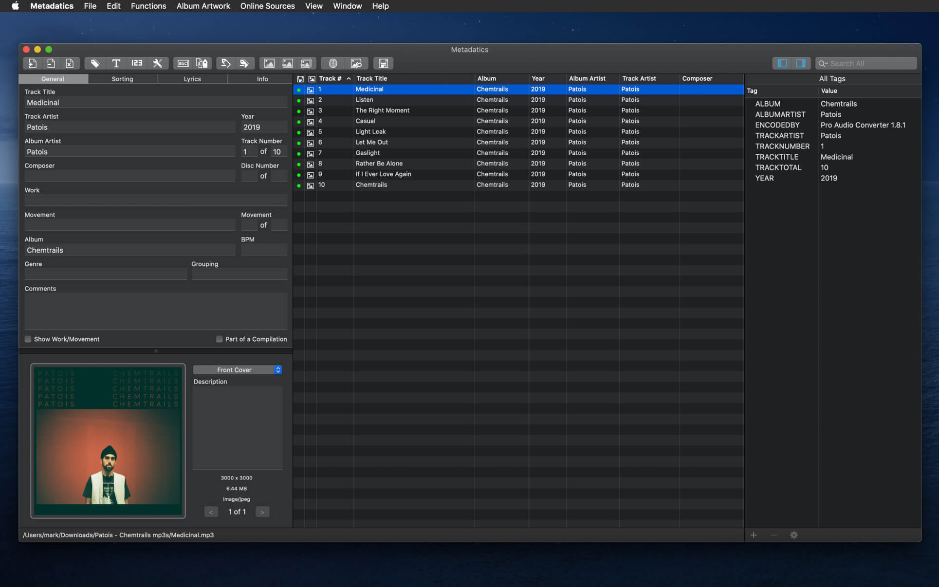 - Album Artwork – Metadatics supports reading and writing multiple images per file. Artwork can be extracted or resized either in a batch or individually.