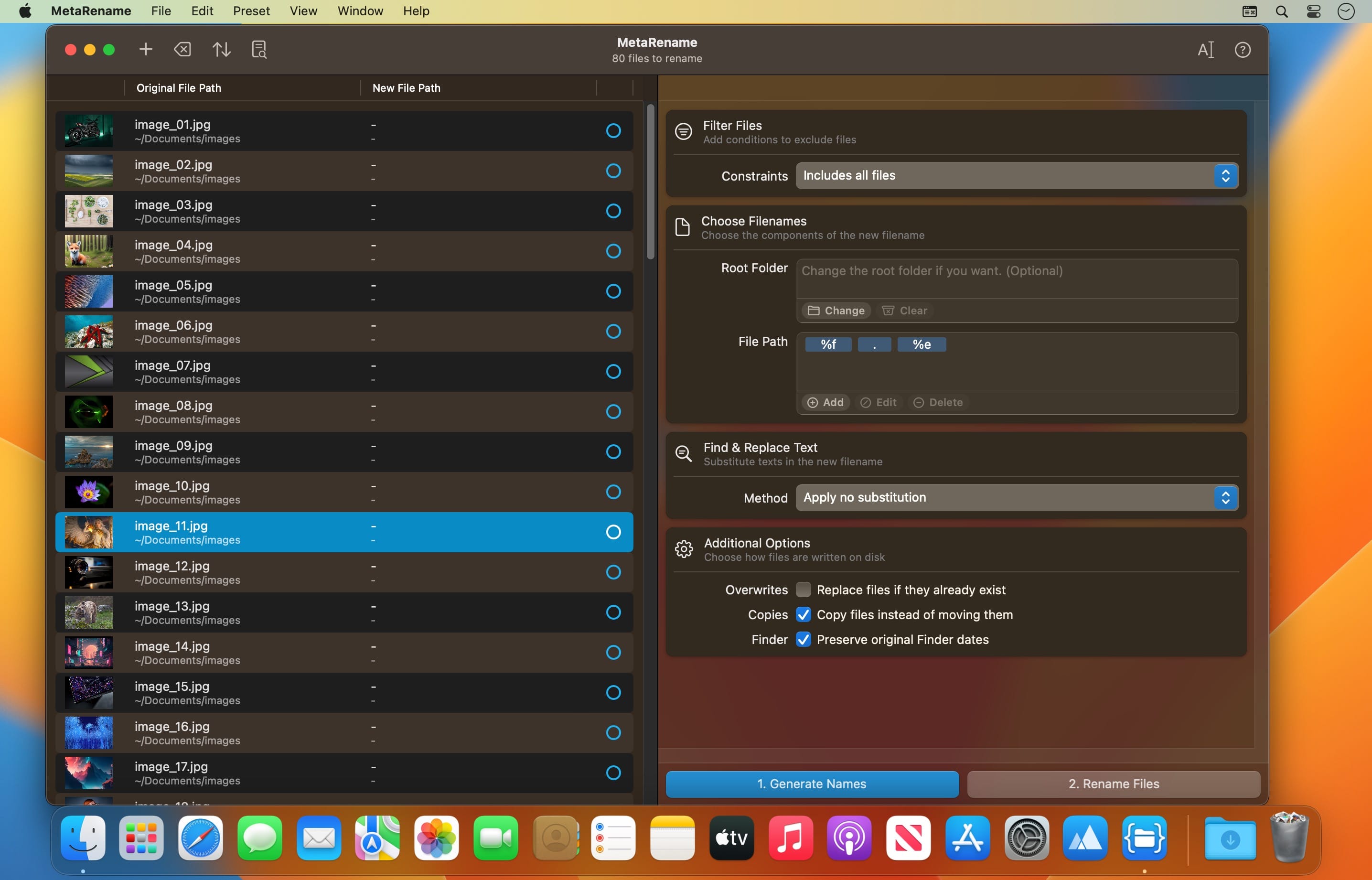 The app can handle all types of files, including images, videos, and audio files. One of the key strengths of MetaRename is its ability to handle large numbers of files easily. This app can open and sort files. Moreover, with its powerful metadata reading capabilities, you can filter your files based on a wide range of criteria, including conditions on metadata.