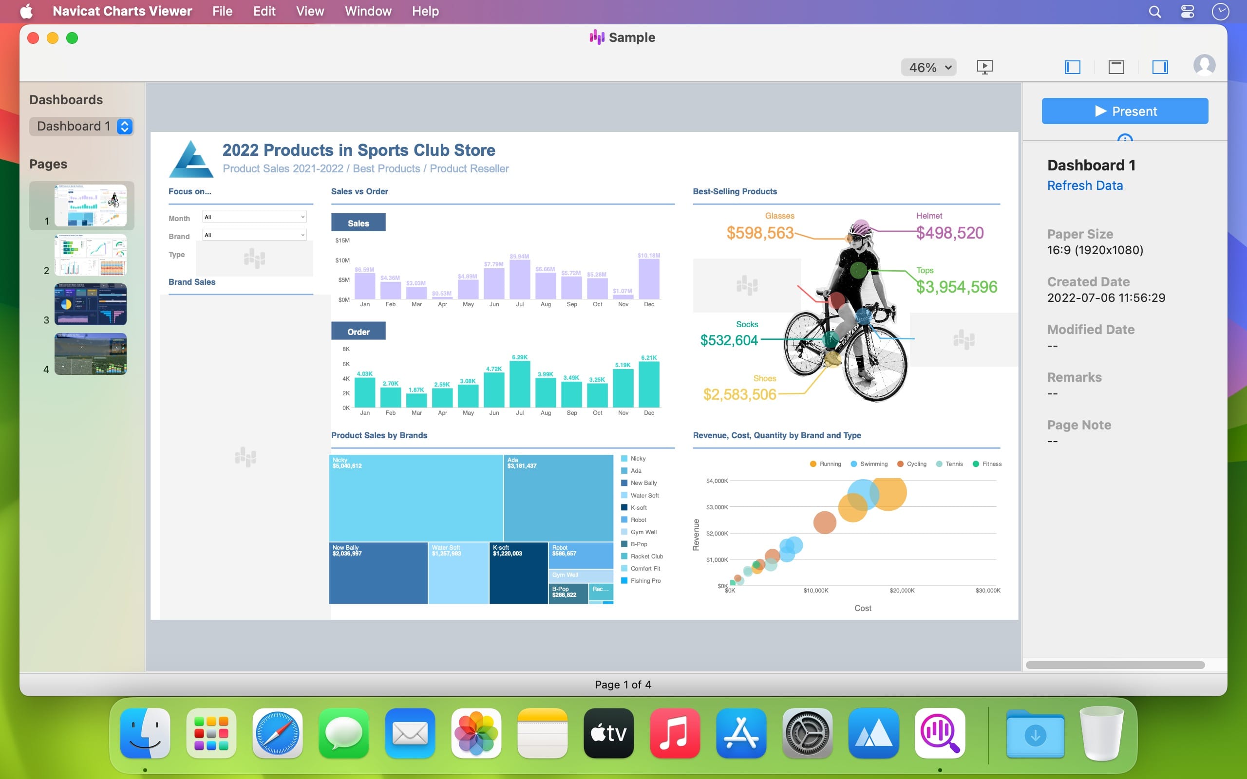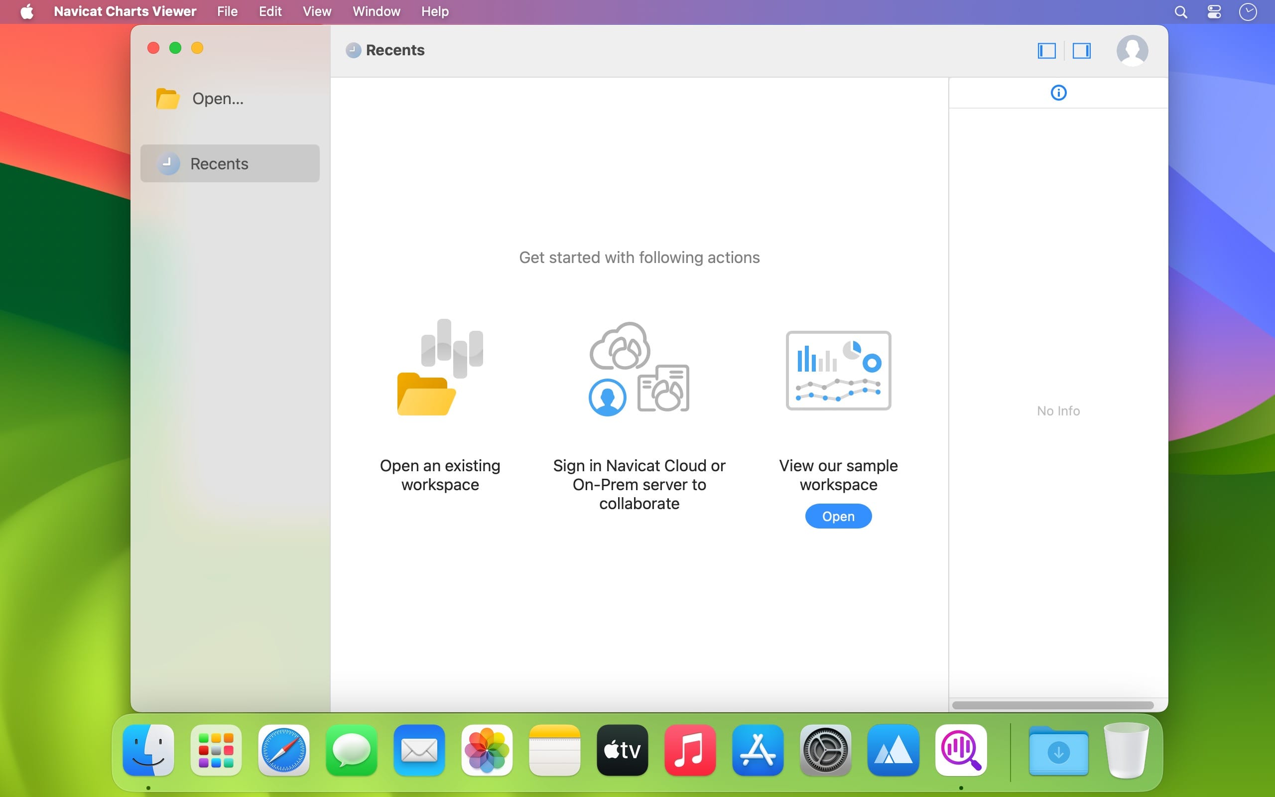 Navicat Charts Viewer is an easy-to-use tool for viewing Charts workspace files. With its friendly Graphical User Interface (GUI), Navicat Charts Viewer allows you to navigate workspaces designed by Navicat’s Charts feature or Navicat Charts Creator. You can access local workspace files, or workspace files stored in Navicat Cloud or Navicat On-Prem Server.
