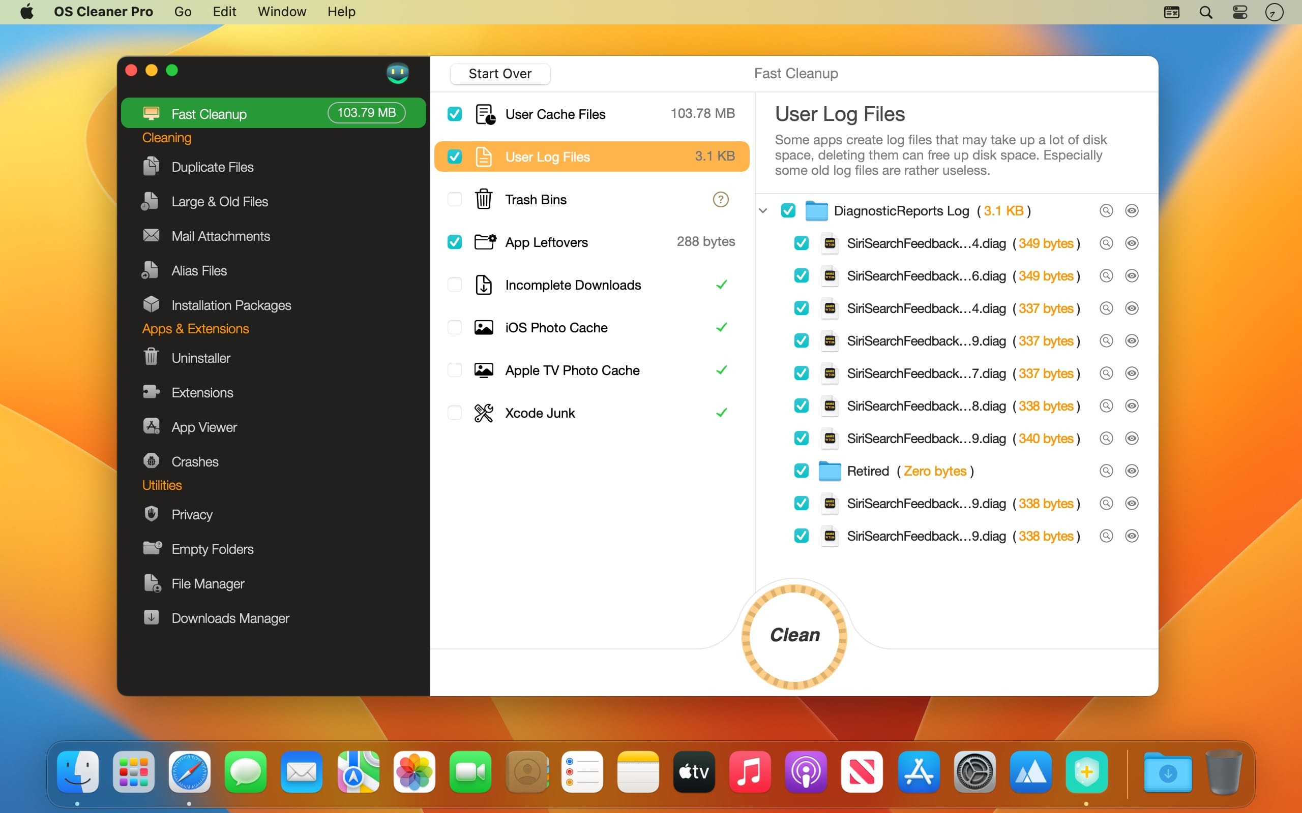 OS Cleaner Pro scans every inch of your system, removes gigabytes of junk in just two clicks, and helps you maintain your Mac’s health.