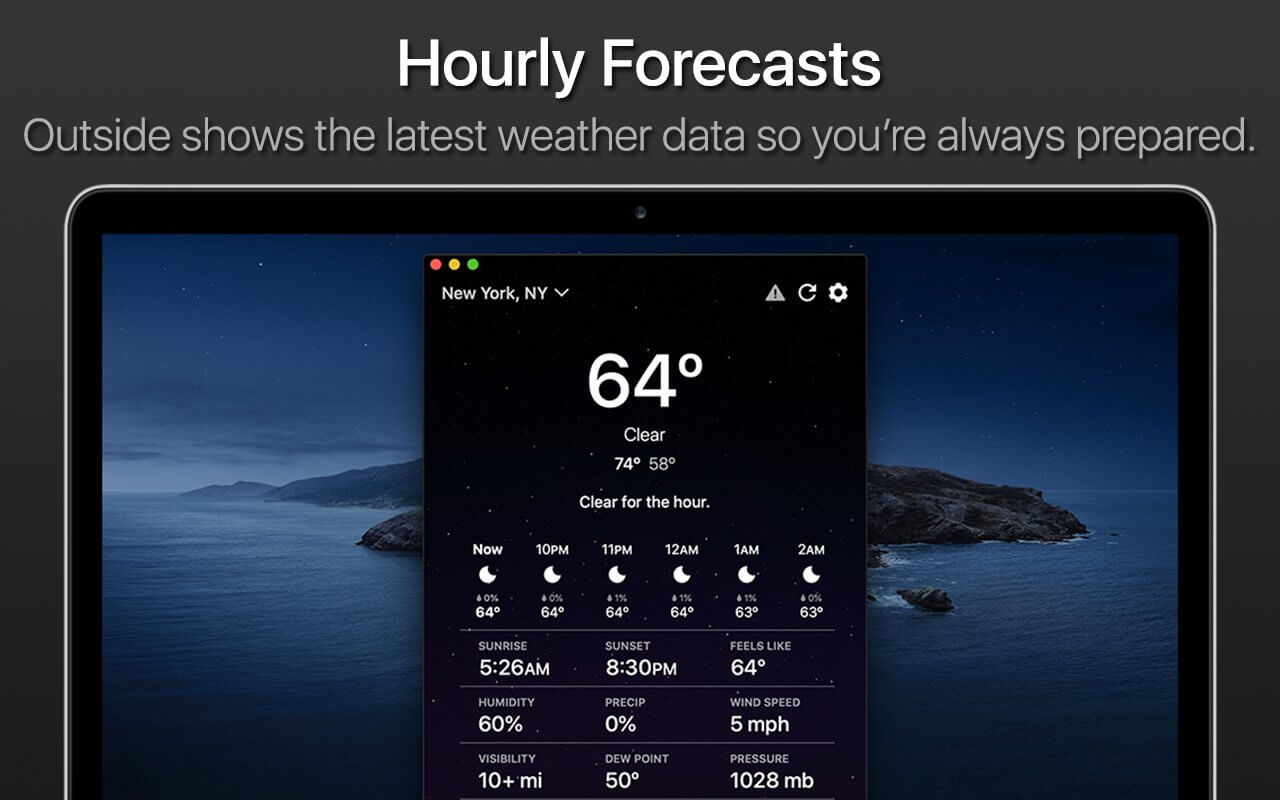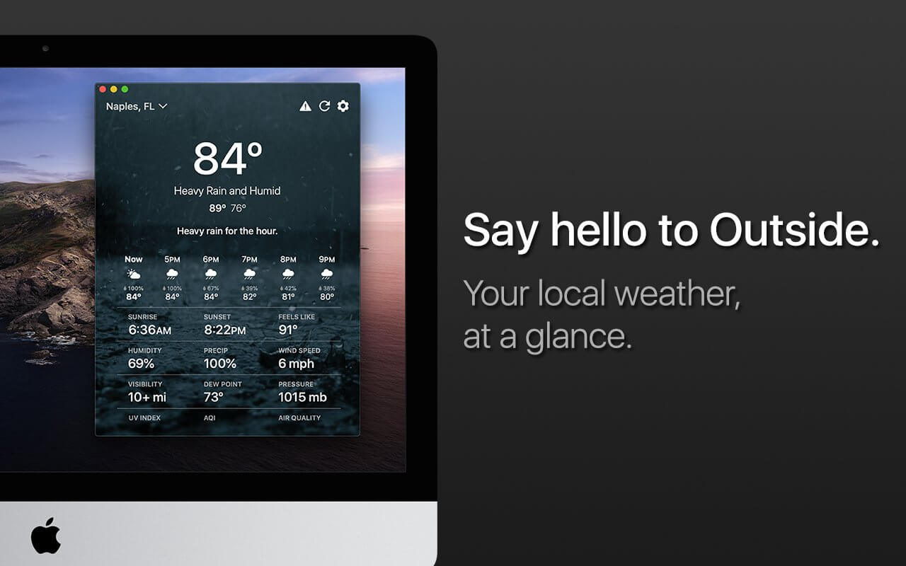 Outside is a weather app that displays the correct weather information right when you need it the most. It uses the location of your Mac to pinpoint the exact weather forecast for your area.