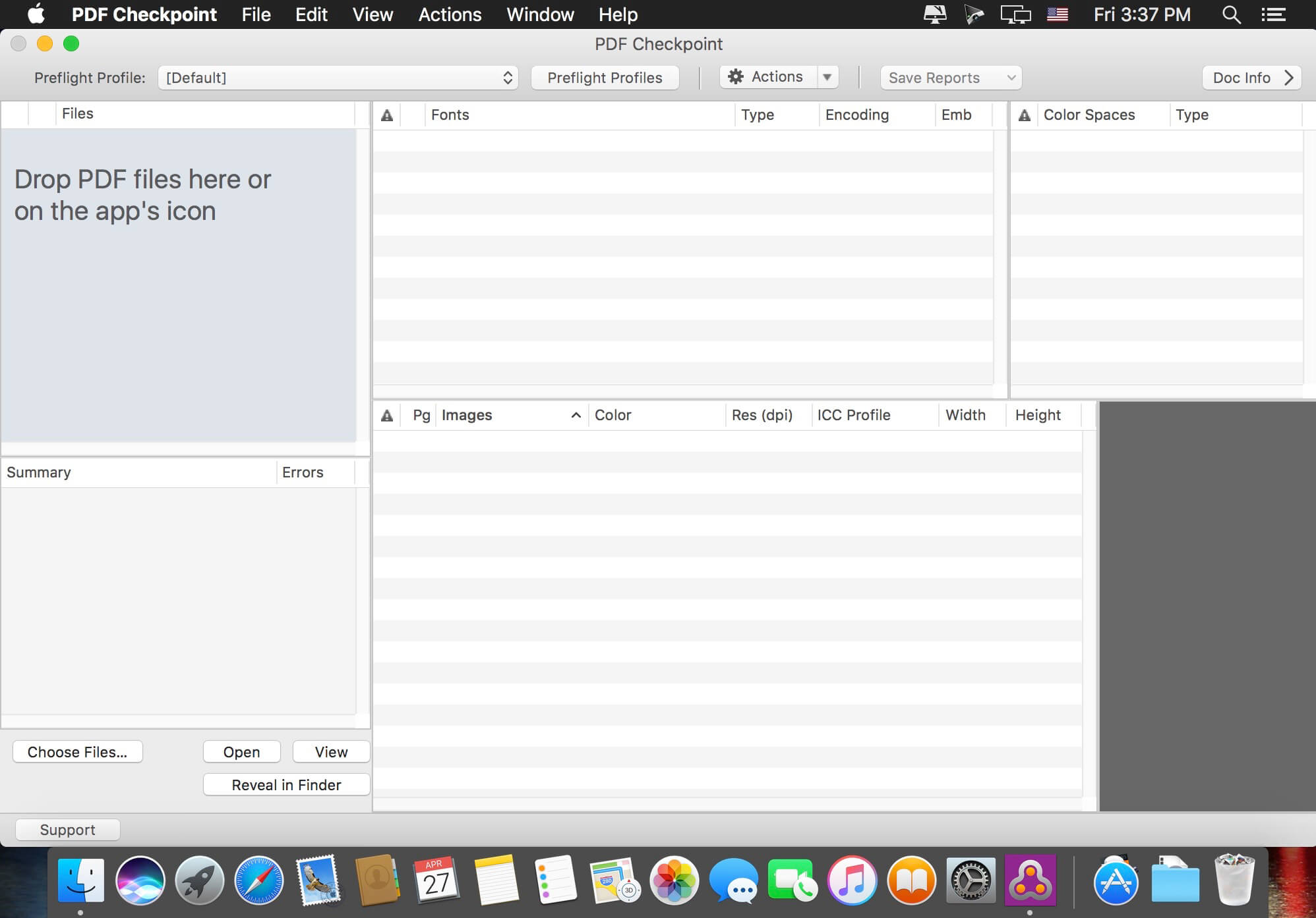 - Preflight PDF files. Quickly preflight multiple PDF files using customizable preflight profiles and get detailed info on document fonts, color spaces, images and attributes.