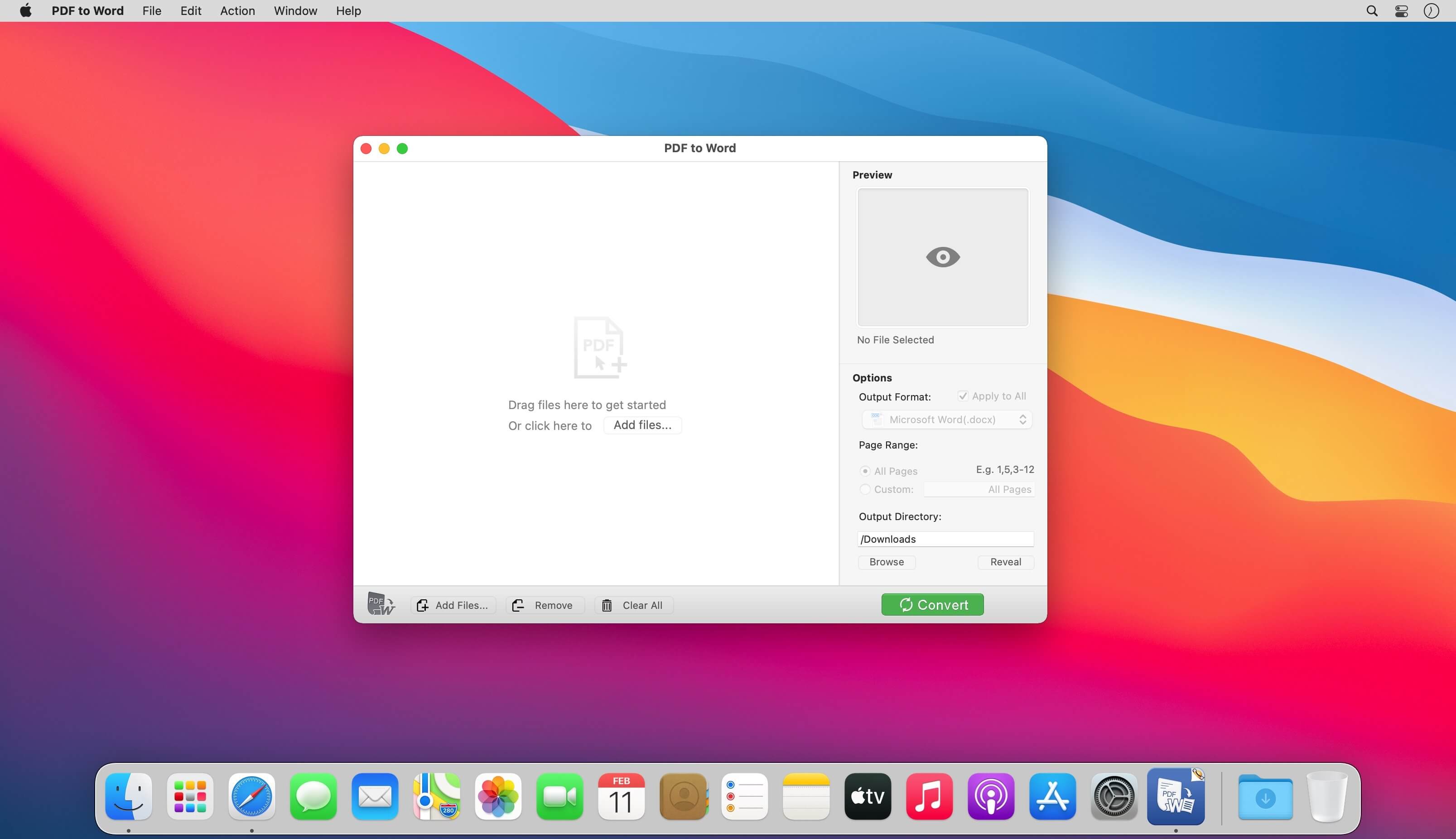 + Convert PDF files to fully-formatted and editable Word (.docx) documents directly.