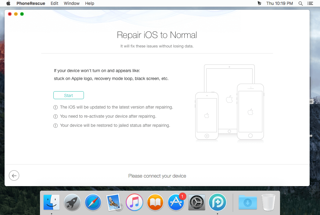 • Fixes any iOS error within a single click to revive your broken iPhone