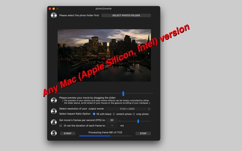 - Custom frame rate setting: from 1 FPS to 100 FPS ( anything between 0.01 to 1 second display time per photo frame);