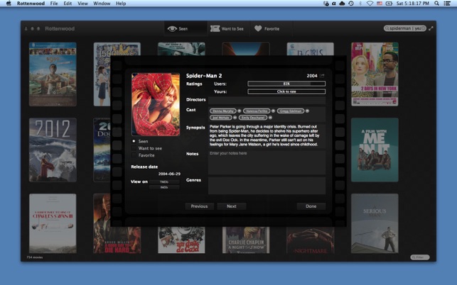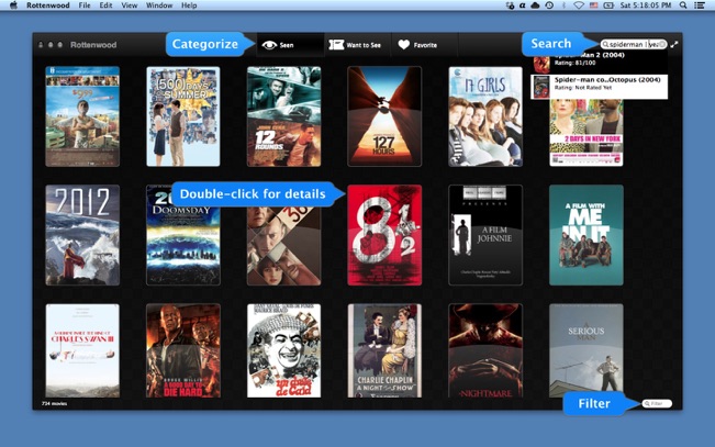 Rottenwood gives you a centralized location for listing the movies you’ve seen or want to see, to mark them as favorites, or even to make notes about them, all in an attractive interface complete with advanced search feature