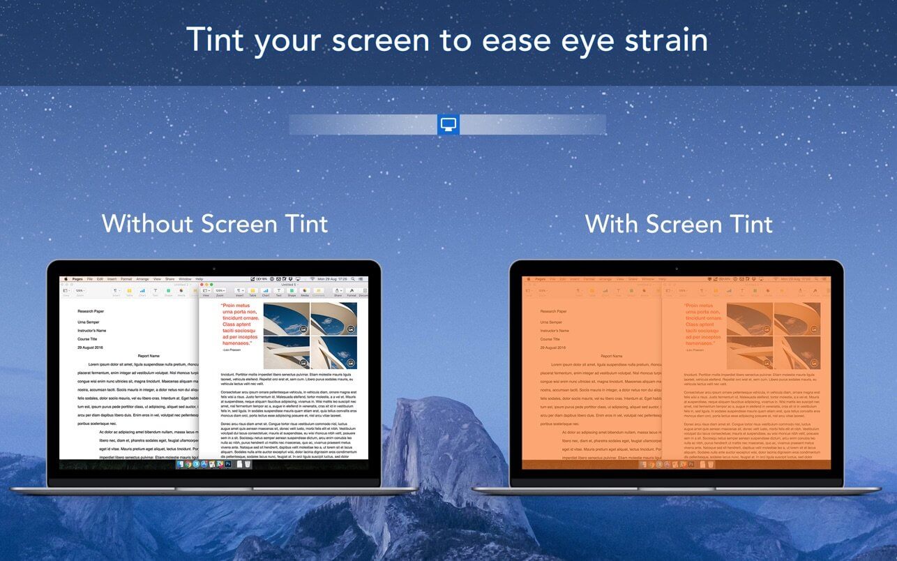 • Tint not only your Mac’s screen as the main display, but also attached external displays