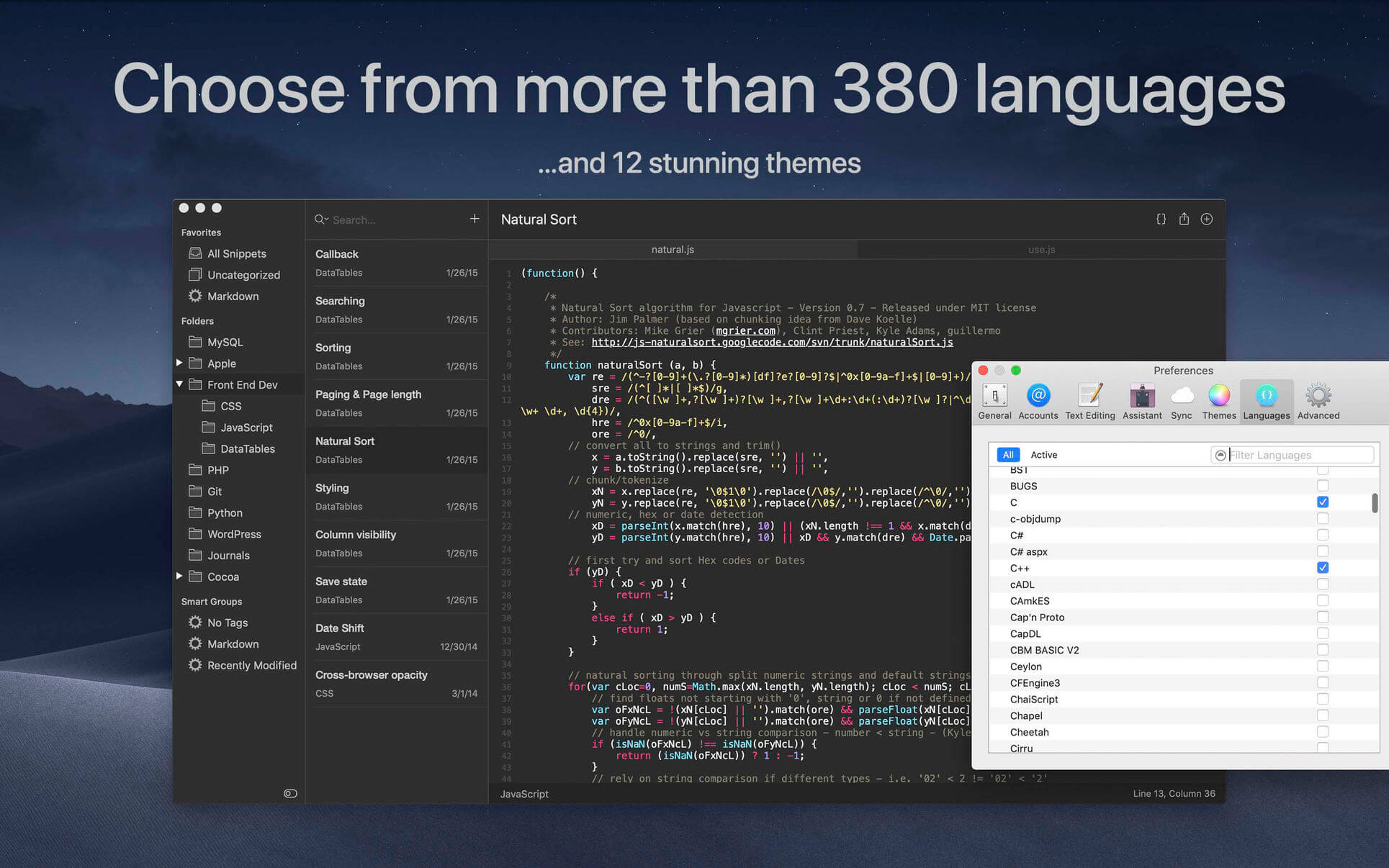 • Use advanced search (search by folder/tags/languages) to find your snippets instantly