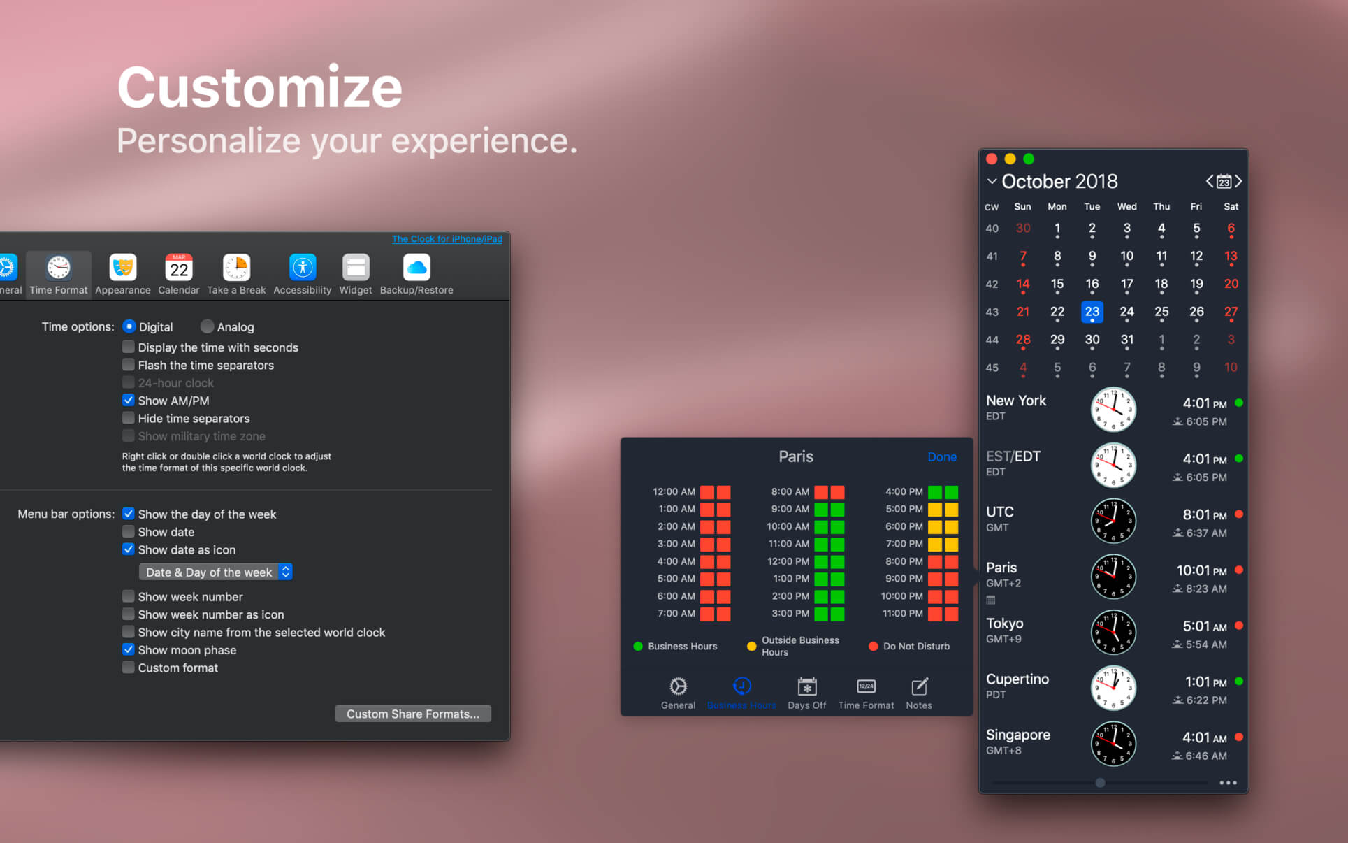 - Have a quick view on a Calendar, which can be integrated with the macOS Calendar
