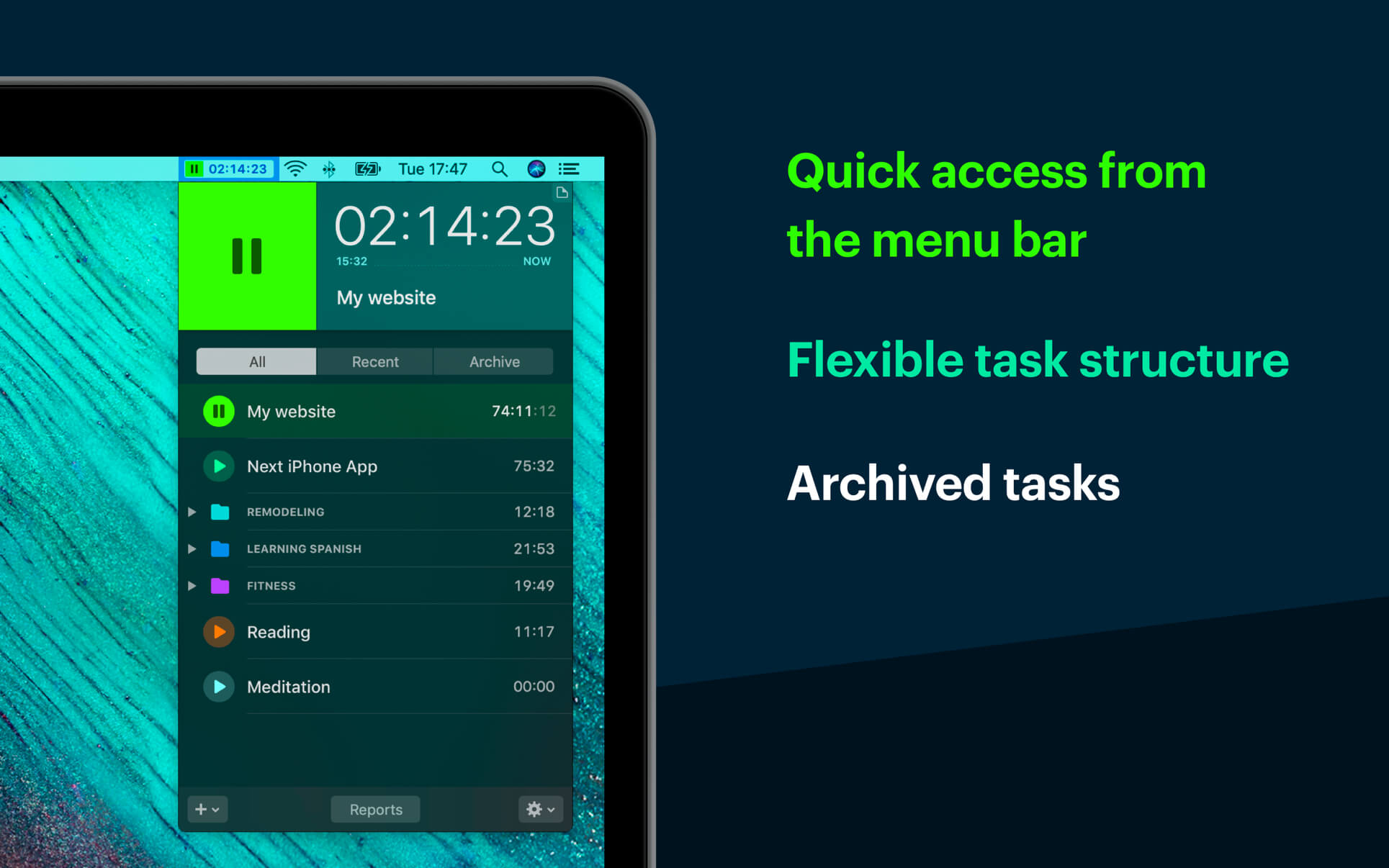 - Quick access from the menu bar