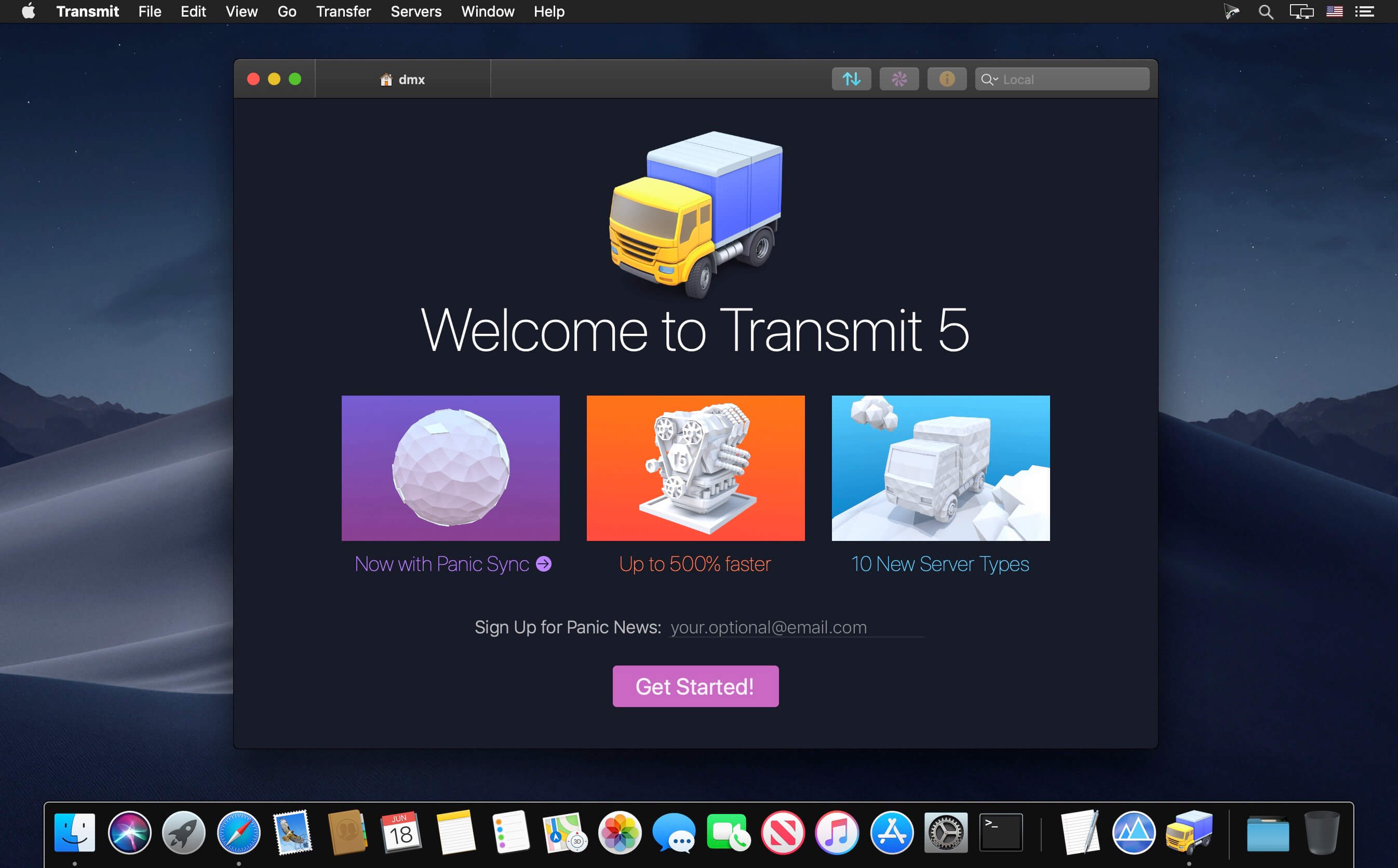 Transmit 5 now includes Panic Sync, our secure and fast way to sync your sites. (You can learn about Panic Sync here.) And our File Sync feature adds support for local-to-local and remote-to-remote sync, while also giving you more fine-grained control.