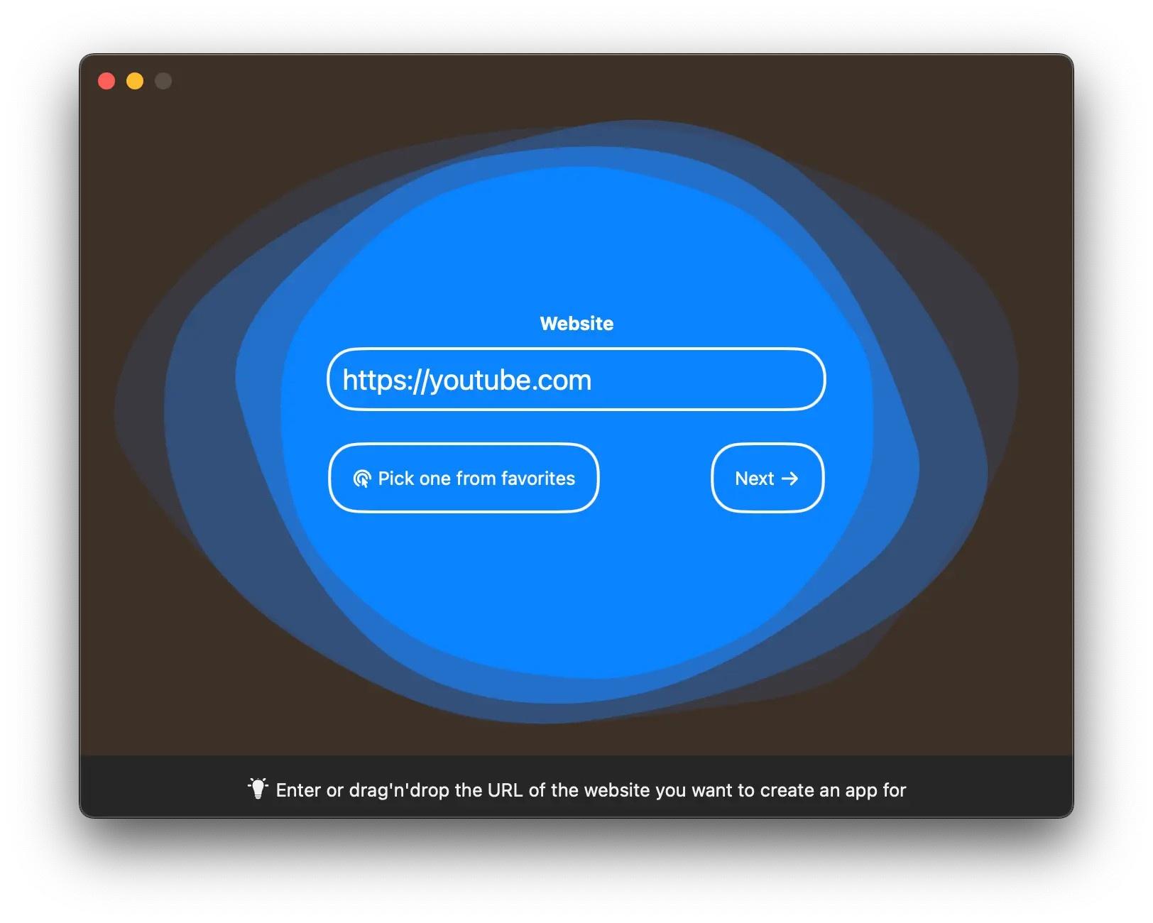 Turn any website into a beautiful Mac app. Just select the website you want, select your preferred options, …and you’re ready to go!