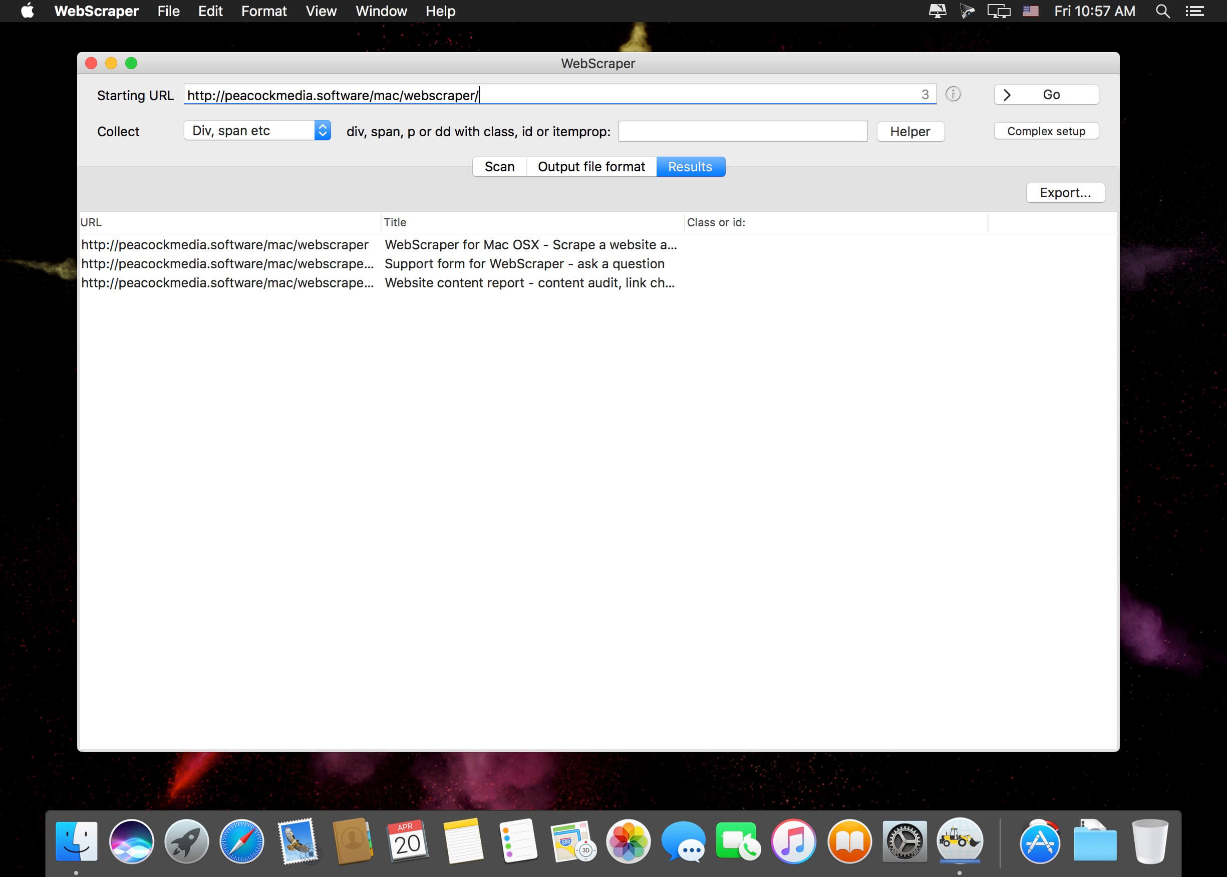 Homepage https://peacockmedia.software/mac/webscraper/