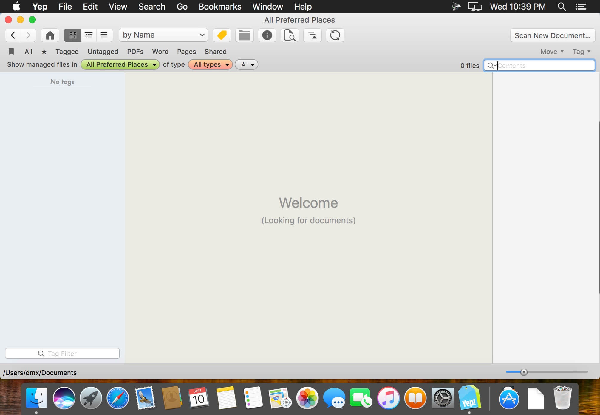 Yep is a document organization and management tool. Like iTunes for music or iPhoto for photos, Yep lets you search and view your documents in a comfortable interface, while offering the ability to automatically save documents into a file in your Documents folder. Yep also provides direct scanning support and new drag-and-drop text or image file creation from within the application.